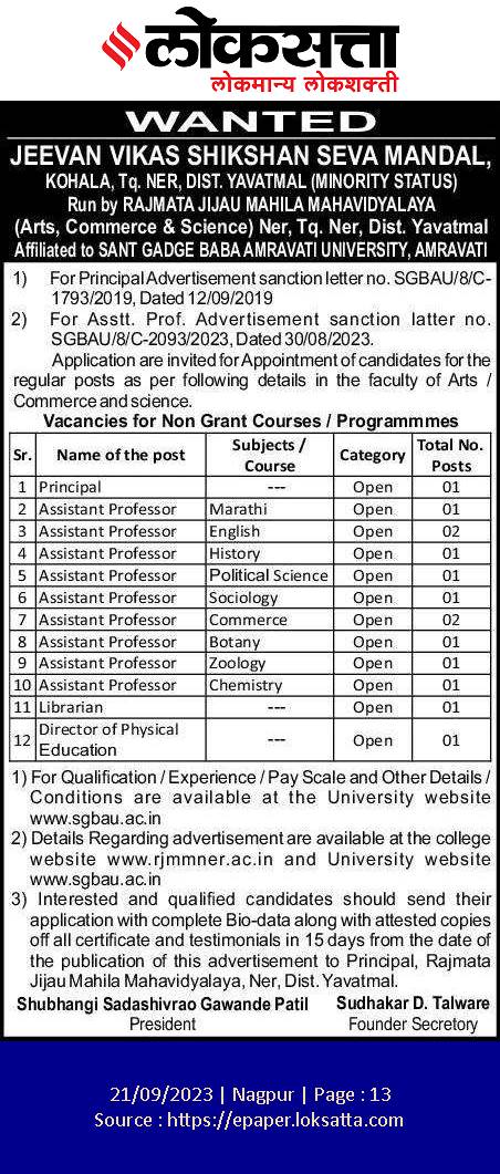 Rajmata Jijau Mahila Mahavidyalaya,Ner was established by Jivan Vikas Shikshan Seva Mandal, Kovala ,Taluka Ner, Dist:Yavatmal (Maharashtra) in 2019- 20 with the noble aim to empower women in this rural area through education and make them independent and responsible citizen. Ner Taluka is a prominently rural area deprived of the adequate facilities of higher education.